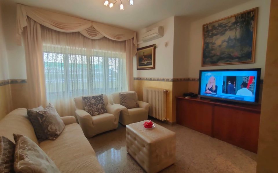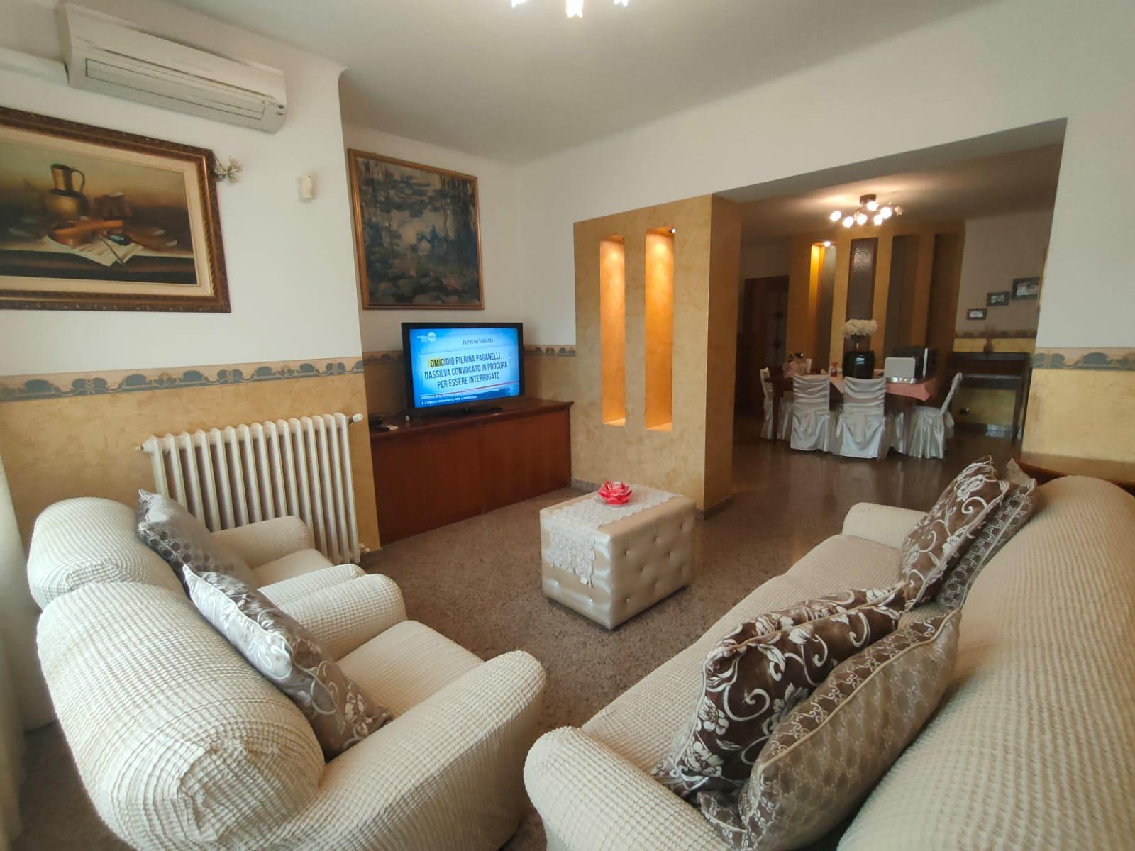 IN PRIMA FILA MARE Appartamento residenziale quadrilocale In prima fila a Tortoreto Lido in zona centralissima, in vendita un comodo e raffinato appartamento in stabile realizzato negli anni ’80. Accesso da disimpegno che conduce su ampio salone vivibile, cucina a parte vivibile, che affaccia su zona esterna. La zona notte è composta da tre camere da letto matrimoniali, di cui una con wc ulteriore bagno, entrambi con doccia. Di pertinenza sottostante box auto di circa 110 mq con annessa cantina, collegato da scala interna. L’immobile viene venduto completo di arredi.